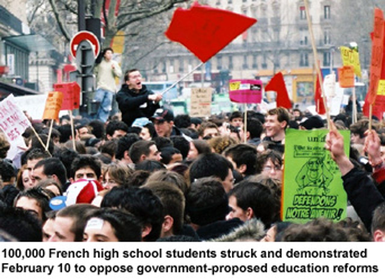 One hundred thousand French high school students struck and demonstrated on February 10 to oppose the law on education reform introduced by François Fillon, education minister in the right-wing government of Prime Minister Jean-Pierre Raffarin. The number of students participating is even more significant given that nearly half the high schools in the country are currently closed for vacation.