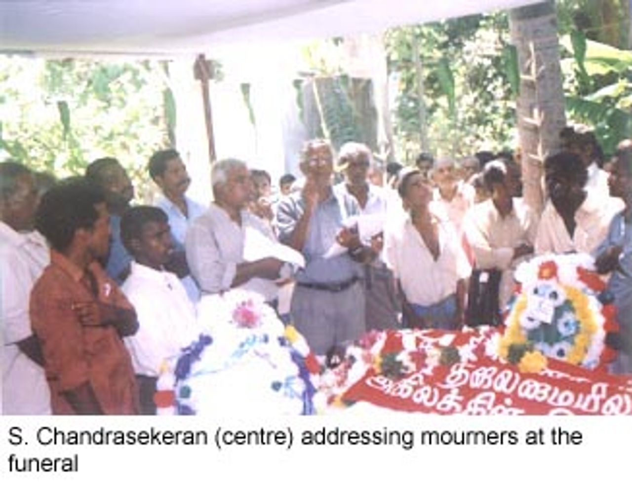 About a thousand mourners attended Sarawanaperumal’s funeral at Wannarpannai in Jaffna on April 15—a testimony to his political and personal standing. Fellow workers, party members and supporters, family, relatives and friends came at short notice from Karainagar, Kayts, Nelliady, Vaddukkkodai, Killinochchi, Vavuniya and Jaffna in the country’s war-torn northern province as well as from Colombo. About eighty workers from his workplace—the Gurunagar branch of the state-owned Ceynor Corporation near Jaffna—took part.