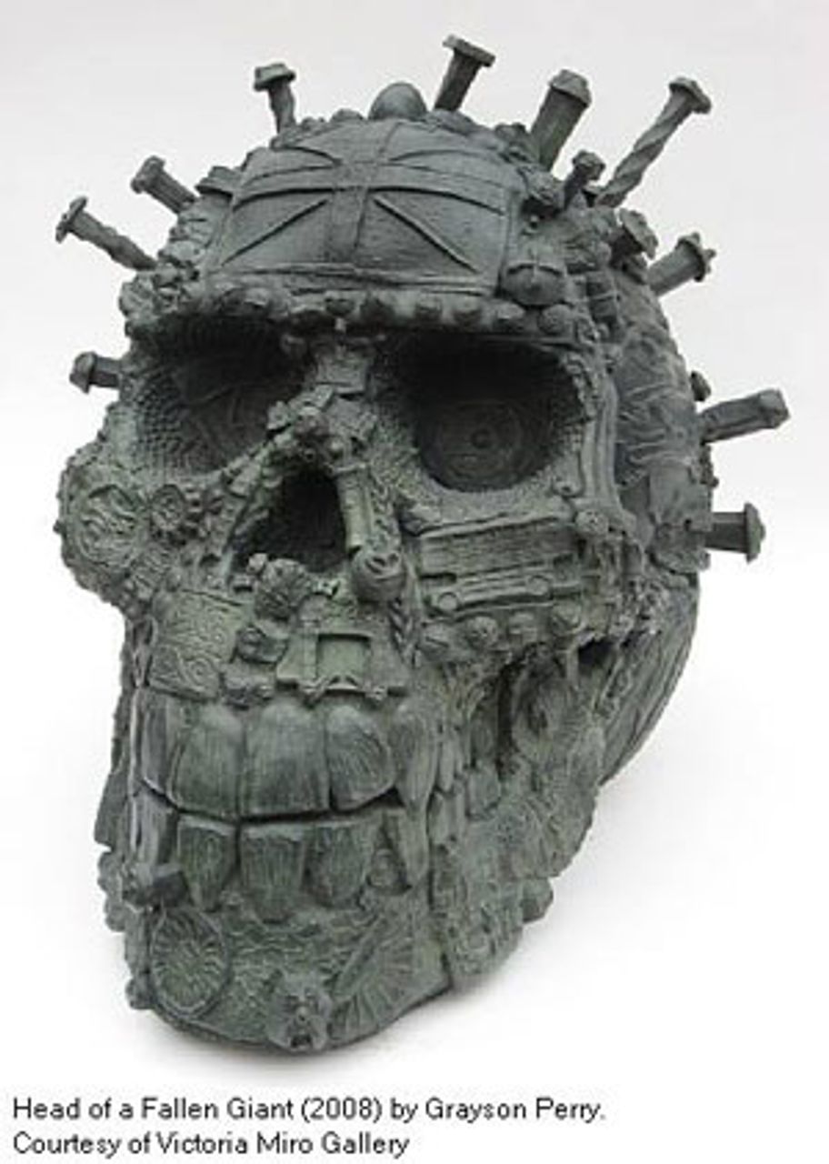 In 2006, Perry curated “The Charms of Lincolnshire” show. He made 20 pots and a small bronze child’s coffin embedded with nails, entitled “Angel of the South.” He made this to contrast with Anthony Gormley’s huge “Angel of the North,” which stands on a hill outside Gateshead. Whereas Gormley’s monument was a celebration of Victorian industrial might, Perry dedicated his piece to the victims, particularly children, of Victorian colonialist expansion.