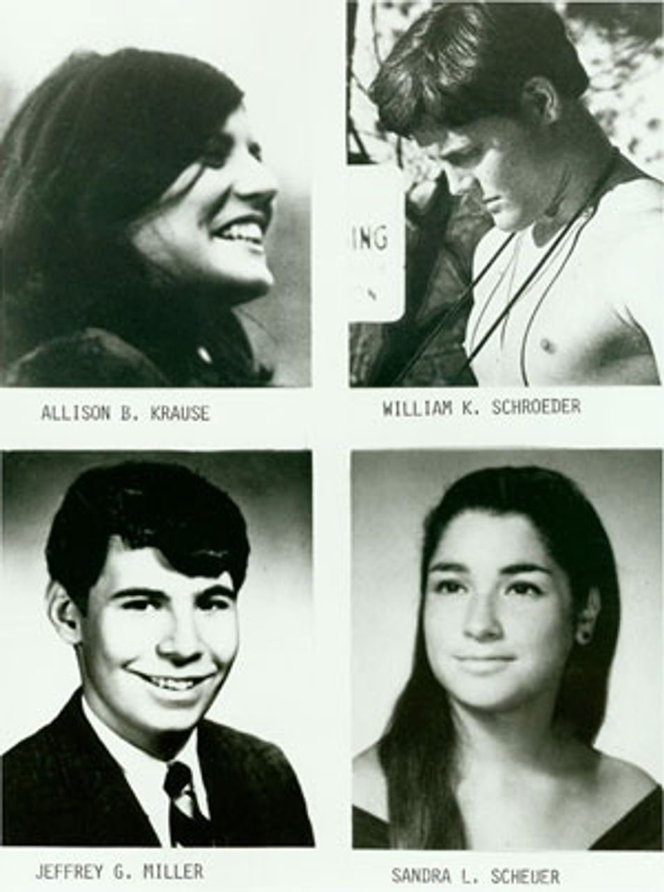 The four students who died were Allison Krause and Jeffrey Miller, who had participated in the antiwar protest, and two bystanders, Sandra Scheuer and William Schroeder, who were walking between classes when the troops opened fire. Miller was killed instantly, Scheuer died within minutes, while Krause and Schroeder succumbed to their wounds after several hours.