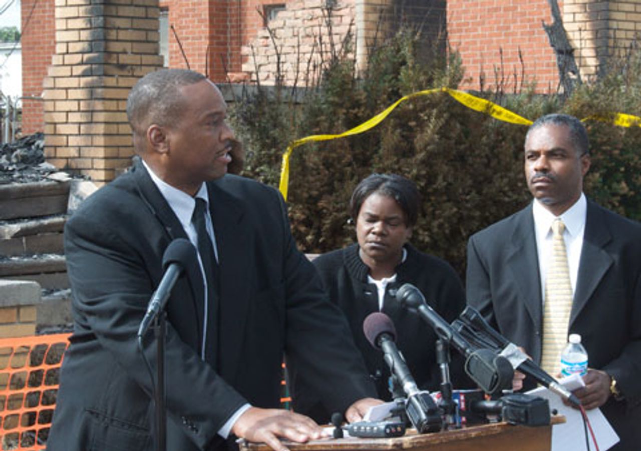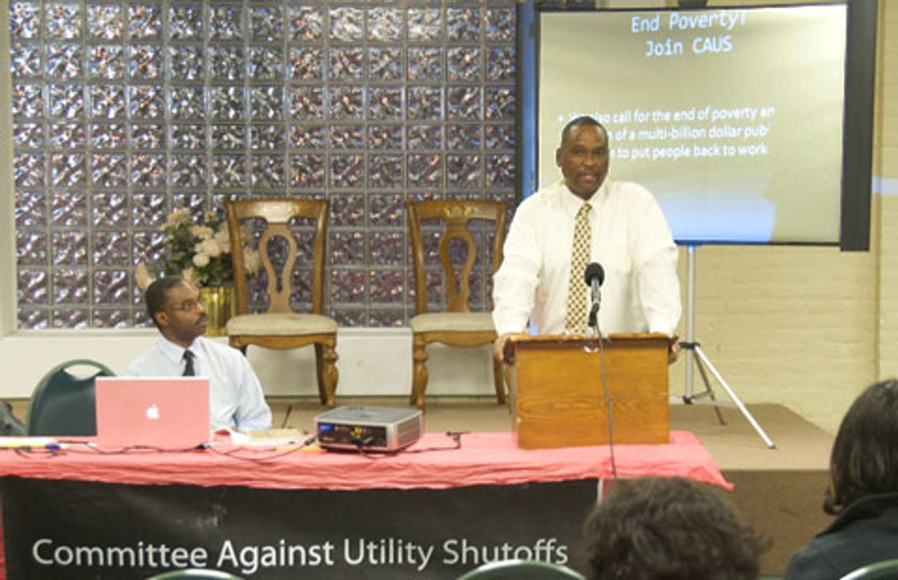 Collier speaks at the CAUS press conference in one of the Detroit neighborhoods most devastated by fire in September“DTE’s relentless drive for profit has led to the deaths of many Detroit residents in house fires after utility shutoffs,” stated Collier at a press conference called by CAUS after the September 7th fires. “It has also contributed to the deaths of two utility workers from electrocution in the past four months. Now this same profit motive has led to a spate of fires across the city.” Collier noted that DTE was never held responsible for these events thanks to the close ties it has with Detroit city officials (Mayor Bing sat on DTE’s board of directors from 1985-2005) as well as ties to the Democratic Party governor, Jennifer Granholm.