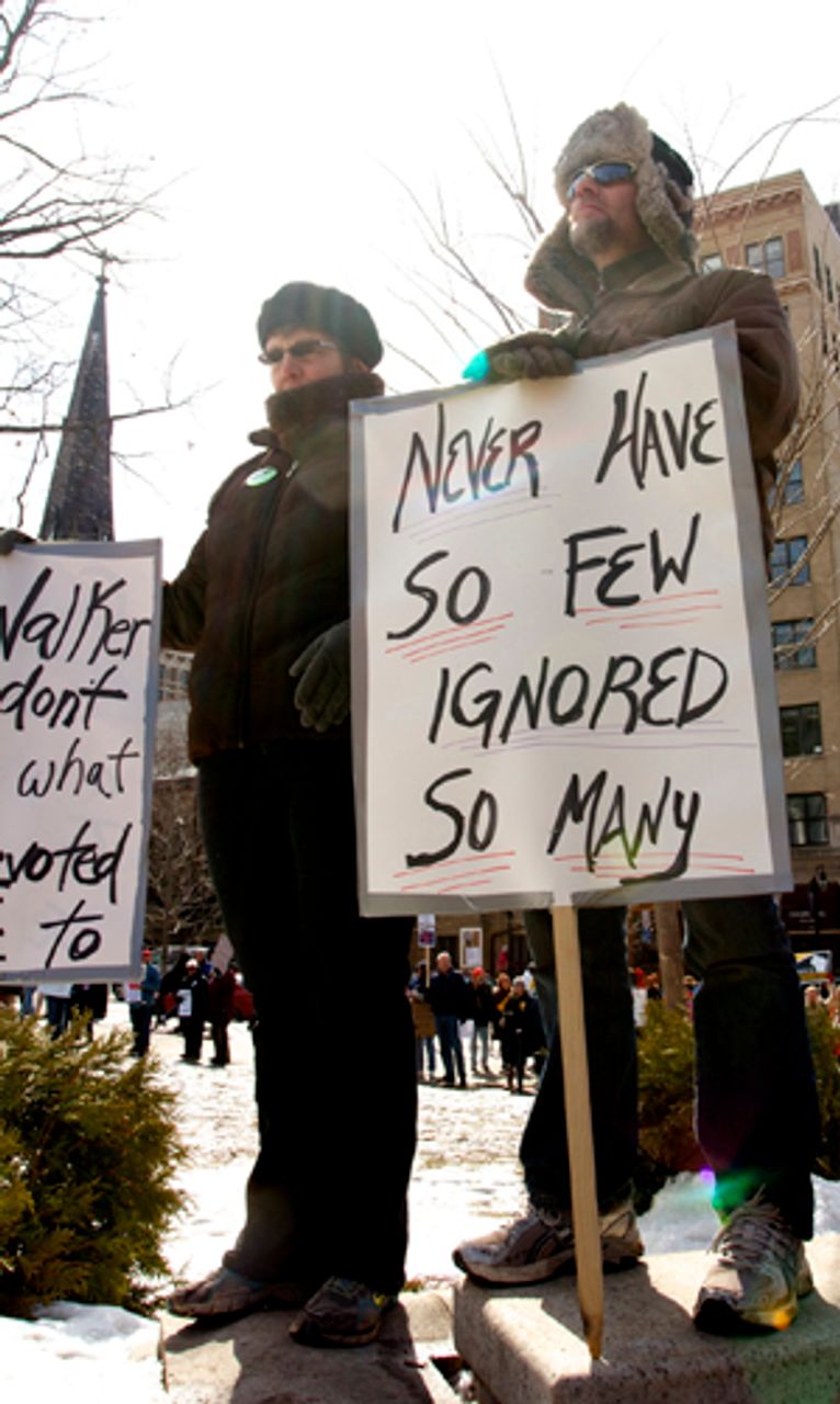 As many as 50,000 workers and young people braved cold weather to demonstrate in the Wisconsin state capital of Madison Saturday, with another 15,000 coming out on Sunday to oppose the attack on public employees and the $1.5 billion in social cuts that have been announced by Governor Scott Walker.