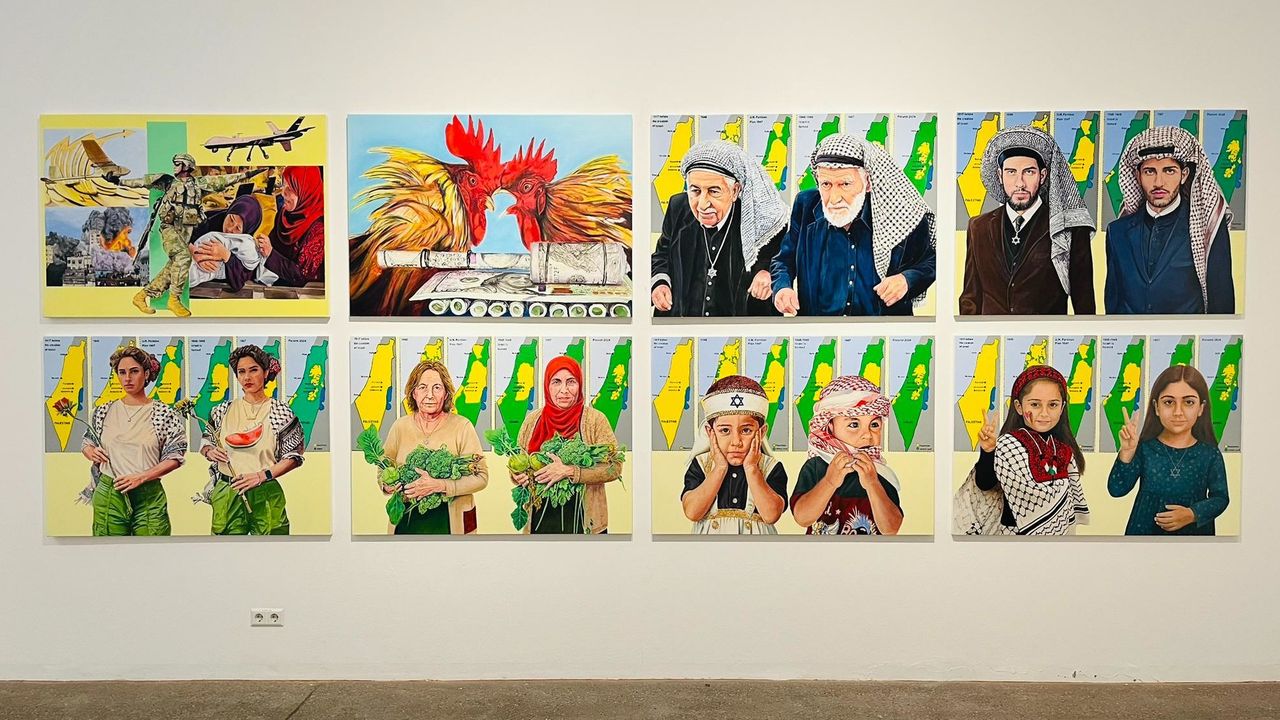 Stefan Steinberg: Your activities to expose the oppression of the Palestinian people go back at least two decades, and in the course of your work you have combined complex mechanical constructions with visual art. The portraits for your current exhibition are meticulously hand-painted portraits based on patterns generated by artificial intelligence. Under capitalist conditions, AI clearly poses great dangers to artistic production, but your own work shows how this new technology can be used in a positive way. Could you say something about this?