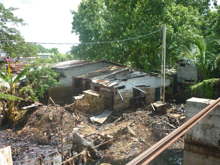 මේ නිවාස අසලින් ගලන රජ්ජුරුපිටිය ඇල, කැලිකසල හා රොන්මඩ වලින් පිරී සම්පූර්නයෙන්ම ජලය බැස නොයන තත්වයක පවතී.