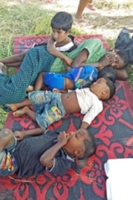 සිය දරුවන් සමග උද්ඝෝෂනයේ යෙදී සිටින කේපාපුලව් ගම්මානයේ ජනයා