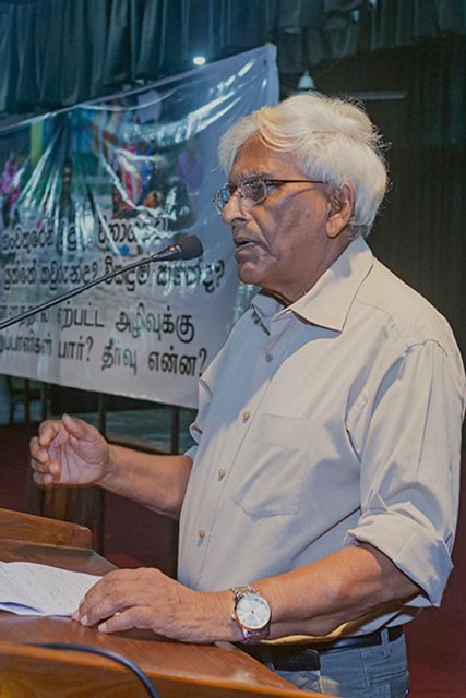 “දෙමල ජනතාවට එරෙහිව තිස් වසරක් තිස්සේ ගෙන ගිය සිවිල් යුද්ධය අවධියේ, පෙර නොවූ විරූ මට්ටමකට නංවනු ලැබූ පොලිස් හා හමුදා බලය ශක්තිමත් කිරීමටත් නීතිමය රාමුව දැඩි කිරීමටත් ලංකාවේ ධනපති ආන්ඩු ලැබෙන සෑම අවස්ථාවක්ම උපයෝගි කර ගනිති”, දේශකයා කීවේ ය.