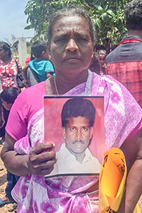 මහේෂ්වරීමල්ලාවි සිට පැමිනි 61 හැවිරිදි පී. මහේෂ්වරීට හා 59 හැවිරිදි සන්තානම්මාට කීමට ද ඇත්තේ ද එම කතාව ම යි. මන්නාරම දිස්ත්රික්කයේ ගොවියෙක් වන නීකිලාන්, අතුරුදන් වන විට 21 හැවිරිදි වියේ පසු වූ තම පුත්රයා සොයමින් සිටී. “එල්ටීටීඊය පලමුවෙන් මගේ පුතා අල්ලා ගත්තා, තුවාල වුනා ම ඔහු ආපසු පැමිනියා. 2009 අප්රේල් 20දා ඉරනයිපලෙයි හන්දියෙදි මම මගේ පුතා ව හමුදාවට භාර දුන්නා. එතන ඉඳන් මගේ පුතා ආගිය අතක් නැහැ” යි ඔහු කීවේ ය.