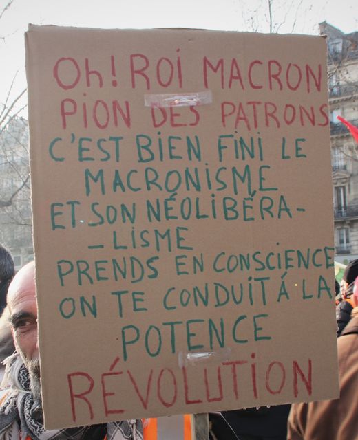 ඕහ් මැක්‍රොන් උතුමා, ලොක්කන්ගේ මෙවලම, මැක්‍රොන්වාදය සහ නව ලිබරල්වාදය අවසන්, ඔබ දැනගත යුතුයි අපි ඔබව පලංචියට ගෙන යන බව. විප්ලවය