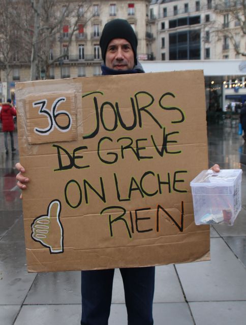 රෝහල් සේවිකාවක් වන මුරියෙල් කියා සිටියේ, වෘත්තීය සමිති හා මැක්‍රොන් අතර සාකච්ඡාවලින් කිසිවක් එලියට එනු ඇතැයි තමන් අපේක්ෂා නොකරන බවයි: “එය ඒකාධිපති ආන්ඩුවක්. එබැවින් මැක්‍රොන් පෙරලා දැමිය හැක්කේ අප සියලු‍ දෙනාගේ පොදු අරගලයකට පමනක් යැයි මම සිතමි. ඔහු රාජ්‍යයේ අධිකාරය සමඟ සෙල්ලම් කිරීමට උත්සාහ කරන අතර ඔහු අපව බිය ගැන්වීමට උත්සාහ කරයි. නමුත් අප සියල්ලන්ම එකට එකතු වුවහොත් අපට ජයග්‍රහනය කල හැකි බව අප වටහාගත යුතුය. ”