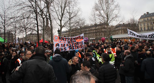 “පැරිස් මහාපරිමාන සංක්‍රමණ කම්කරුවන්: විශ්‍රාම වැටුප් කප්පාදුව එපා ”