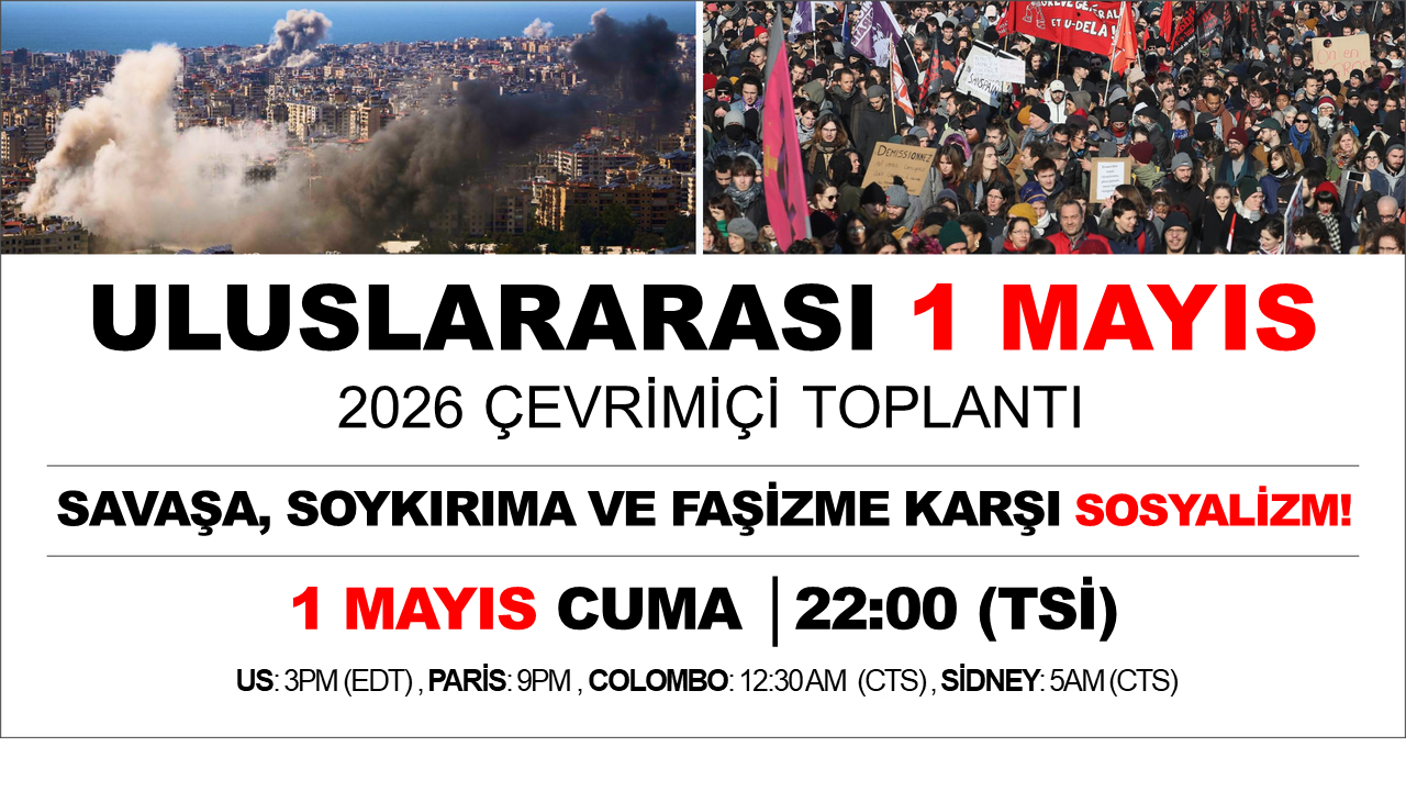 2026 Uluslararası 1 Mayıs Toplantısı, kapitalizme, işçileri emperyalist savaşa ve demokratik haklara yönelik küresel saldırıya karşı mücadelede uluslararası düzeyde birleştirecek devrimci bir perspektif sunacak. Toplantı, İran’a yönelik suç niteliğindeki saldırıyı sona erdirmeye, faşizmin yükselişine karşı çıkmaya, eşitlik ve insani ihtiyaçlarına dayalı bir toplum inşa etmeye yönelik bir program ortaya koyacak.